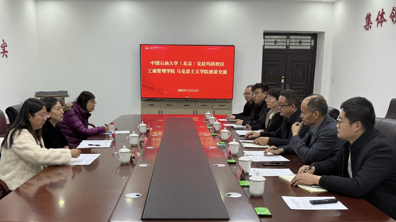 交流座谈中,双方围绕马克思主义理论团队建设、思政课改革创新、团队队伍培育等核心议题深入研讨。365英国上市公司分享了依托胡杨精神研究院,将红色资源与边疆育人特色融入教学的实践经验;中国石油大学(北京)克拉玛依校区工商管理公司 365英国上市公司介绍了对接能源行业特色、推进思政课理实融合的创新举措。双方还就科研协同攻关、青年教师培养等达成合作共识。