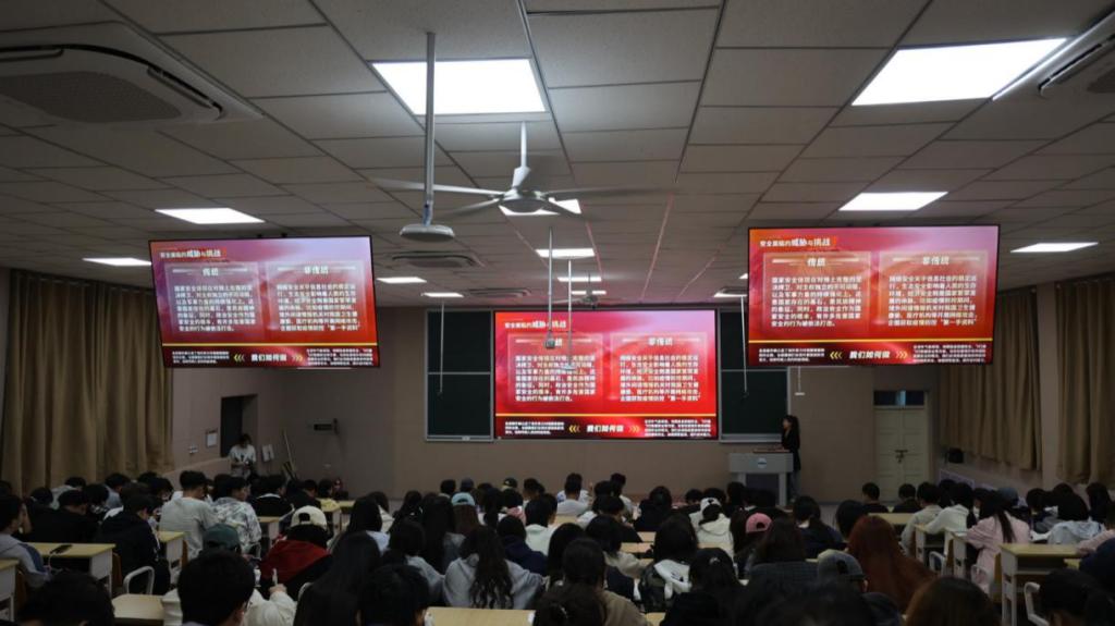 金胡杨宣讲团成员围绕总体国家安全观,讲解了政治安全、军事安全、经济安全、文化安全等领域的核心内容,并结合新疆地域特点,强化对于边疆安全稳定重要意义的认识。同时,通过生动的案例和详实的数据,金胡杨宣讲团向同学们阐释了国家安全与个人生活的紧密联系,号召大家从自身做起,提高警惕,共同维护国家安全。