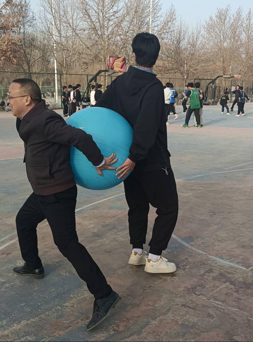 接下来教工第五党支部教师及结亲员工开展小游戏。首先背靠背夹球,比赛距离为5米,2名队员组合为一组,2个人背靠背将球夹住,站在起跑线外。裁判发令后,两人配合使用后背夹球并将其运到终点按用时长短排名次,用时越短,名次越靠前。其次合作投篮,教师与结亲同学合作,站在罚球线或者是三分线,时间三分钟,在三分钟内教师与结亲同学可以任意投篮,最终以获得最高分胜出。名次在前三者获奖,提前淘汰者需要表演节目。