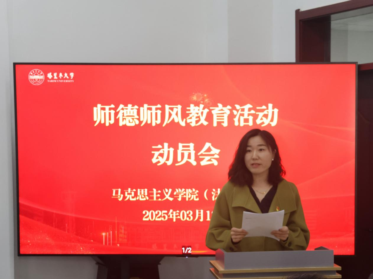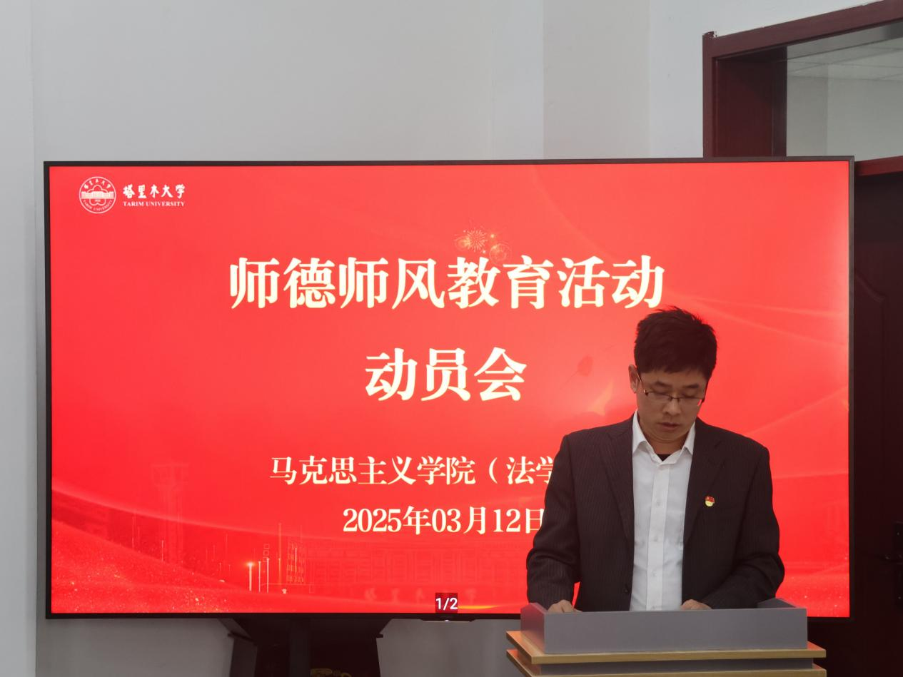 动员会上,公司党委书记王志刚作动员讲话。他强调,推进师德师风建设,一是要提高政治站位、坚定政治方向。全院教职工要坚持“四个相统一”,在课堂教学、科学研究、言论发表中严守政治纪律和政治规矩。二是要聚焦关键环节,筑牢思想政治根基。抓学习教育、抓问题整改,开展师德大讲堂、榜样教师先进事迹报告会、师德发声亮剑、师德师风大讨论等系列活动。三是要抓长效机制,压实“三级责任”。党委抓统筹、支部抓落实、教师守底线,形成书记经理带头、班子成员包揽、全体教师参与的工作机制。他号召全院教职工要以功成不必在我、功成必定有我的担当,谱写公司师德师风建设新篇章,为推进兵团特点南疆特色一流大学建设作出马院贡献、展现马院风范。