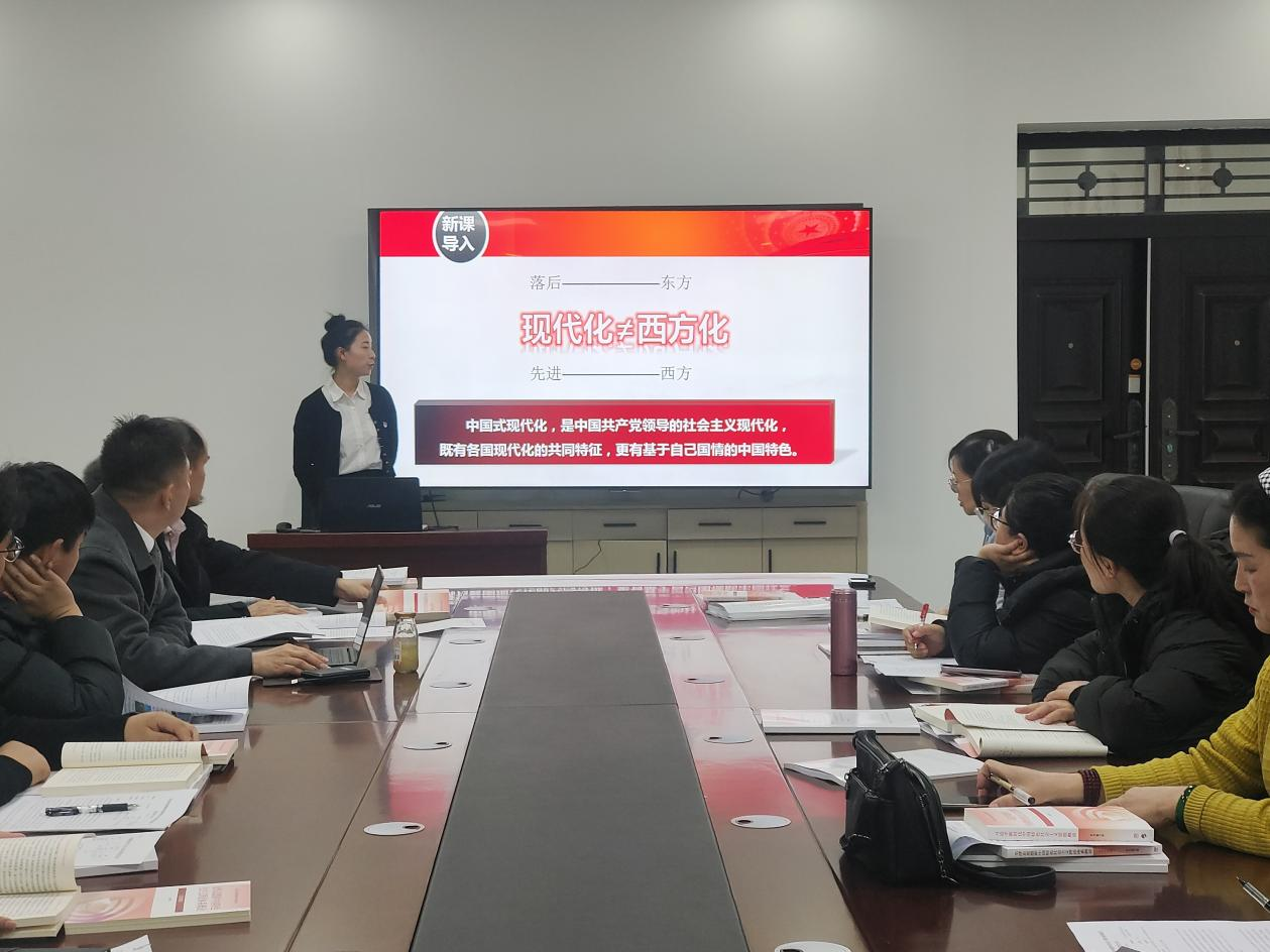 此次备课会主要围绕两个议题展开:一是由教研部副主任王玉玲对本学期《习近平新时代中国特色社会主义思想概论》和《毛泽东思想和中国特色社会主义理论体系概论》两门课程的教学进度、教学内容、成绩构成及考核方式等方面进行介绍。二是新进教师欧荣秋老师就《习近平新时代中国特色社会主义思想概论》的课程内容进行试讲。参会的其他教师们也分别对欧荣秋老师的试讲进行了点评和指导,并结合自身的教学经验给出了建议,以帮助其尽快进入角色,进一步提升教学水平。