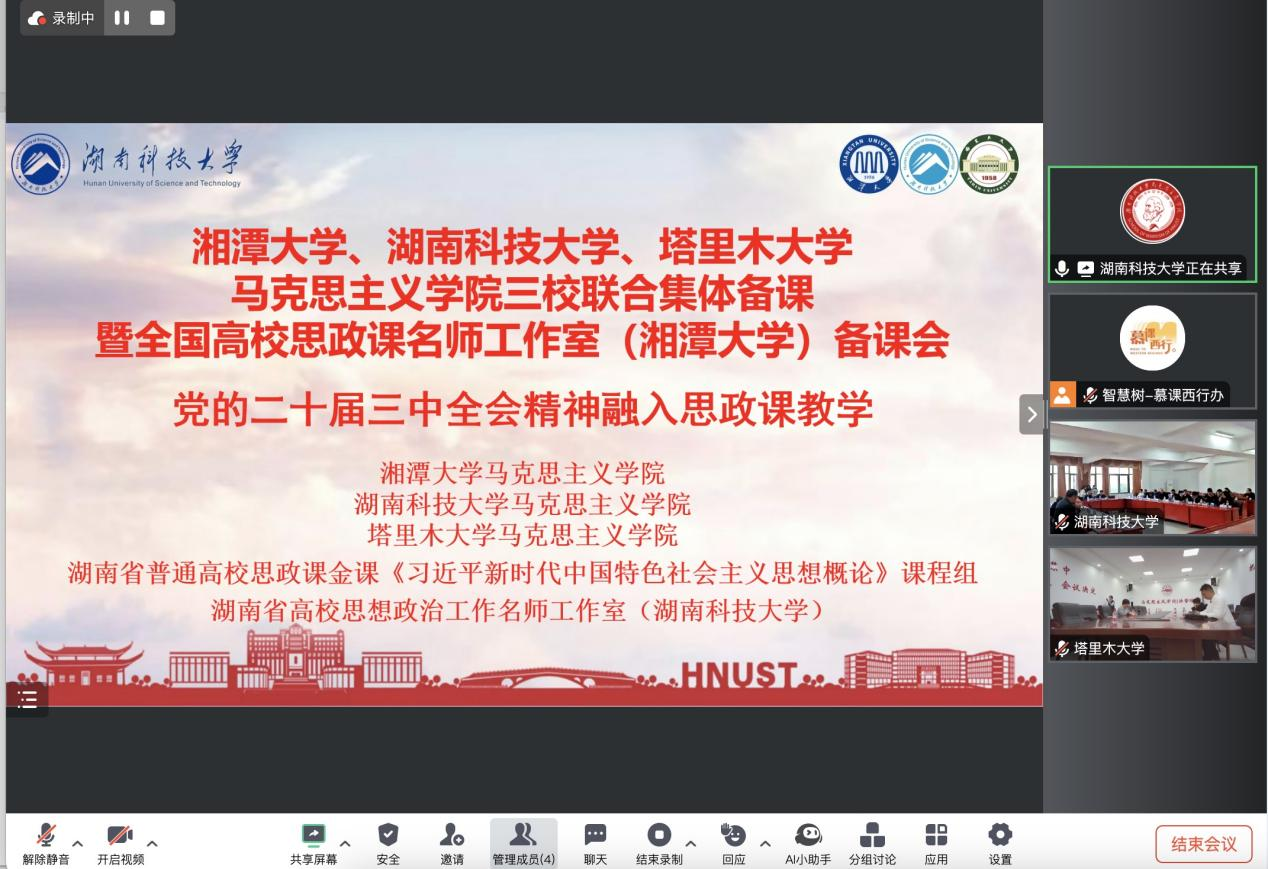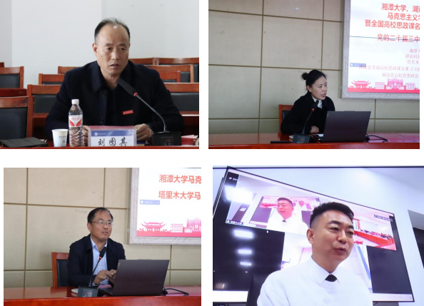 备课会第一阶段由湖南科技大学公司党委副书记刘图其代表主办单位致辞,对党的二十届三中全会重大时代意义和深远历史影响,将党的二十届三中全会精神融入思政课公司产品全过程方面进行了阐述。湘潭大学365英国上市公司副经理杨小军、湖南科技大学365英国上市公司副经理黄爱英、公司朱瑞海教授分别代表各自高校就思政课建设的情况,从公司建设思路、主要做法、优势特点等方面进行了汇报交流。