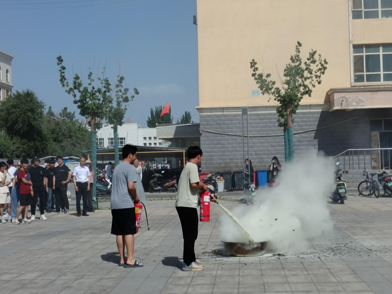 演练过程中,保卫部的老师分别对火灾疏散、灭火器操作、灭火器的种类三项内容进行了模拟演示。同学们按照指令迅速行动,并有序地按照逃生办法撤离到安全区域。在模拟使用灭火器时,同学们严格按照灭火器操作方法,一提、二拔、三握、四压,随后邀请在场的同学按照灭火器操作方法,迅速将燃起的大火扑灭。通过演示和现场实操的方式,有效提升了辖区商户们应对火情时的应急处置能力。